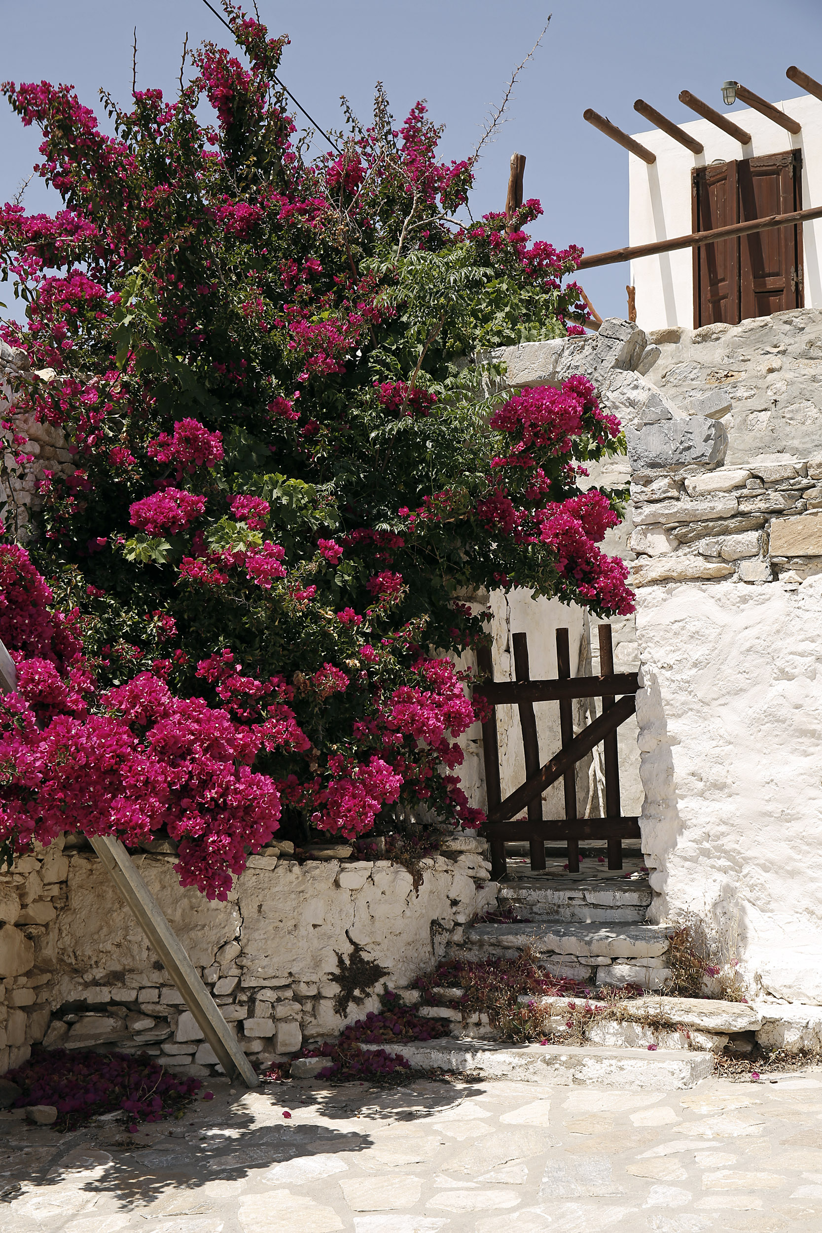 Φθάνοντας στην Παναγιά (Χώρα) και αφού δεν έχω καταλάβει λέξη από ότι έλεγε ο Ισπανός καθώς οδηγούσε το μηχανάκι με απόλυτη απειρία, κλείνοντας τον κινητήρα, επικρατεί μια υπέροχη, απόκοσμη ησυχία. Σαν μουσείο κυκλαδικής παράδοσης και αρχιτεκτονικής στέκει μπροστά μου το χωριό, χτισμένο σε μια ράχη κάτω από την κορυφή του βουνού Πάπα – Προφήτη Ηλία. Εκτός από 2-3 μόνιμους κάτοικους οι οποίοι εμφανίζονται σποραδικά στις αυλές τους ή σε μια σύντομη μετακίνηση, το χωριό μοιάζει ακατοίκητο. Μέχρι τις απογευματινές ώρες βέβαια, όταν με αφορμή το μεζεδοπωλείο της «Δροσιάς» και την όμορφη εσωτερική αυλή του αλλά και τη χαμηλότερη θερμοκρασία του σούρουπου, μια πνοή ζωντάνιας καλύπτει την ατμόσφαιρα.