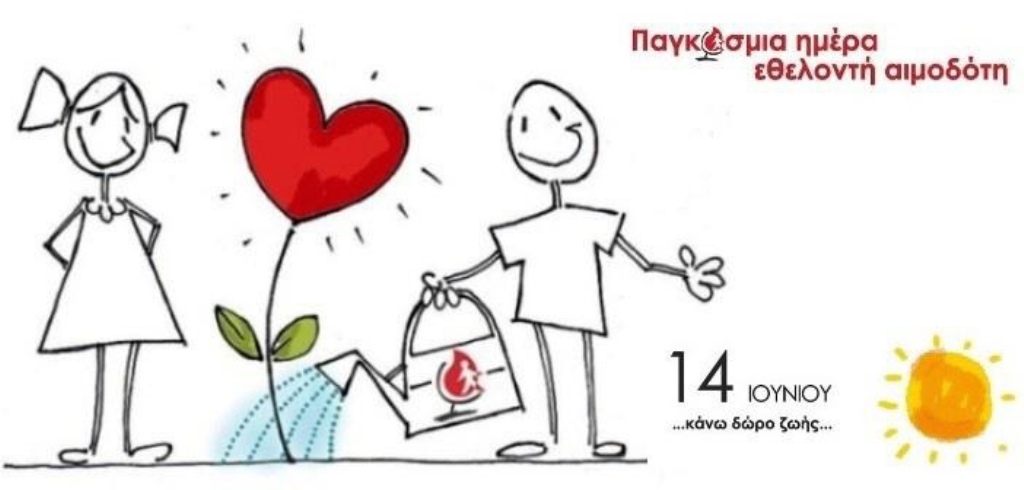 Παγκόσμια ημέρα εθελοντή αιμοδότη σήμερα, 14 Ιουνίου, και στόχος είναι τόσο να τιμήσουμε τον ανώνυμο εθελοντή αιμοδότη για τον αλτρουισμό που επιδεικνύει, καθώς και να «μεταγγίσουμε» στη νέα γενιά την αξία της προσφοράς και την ιδέα της μη αμειβόμενης εθελοντικής αιμοδοσίας.